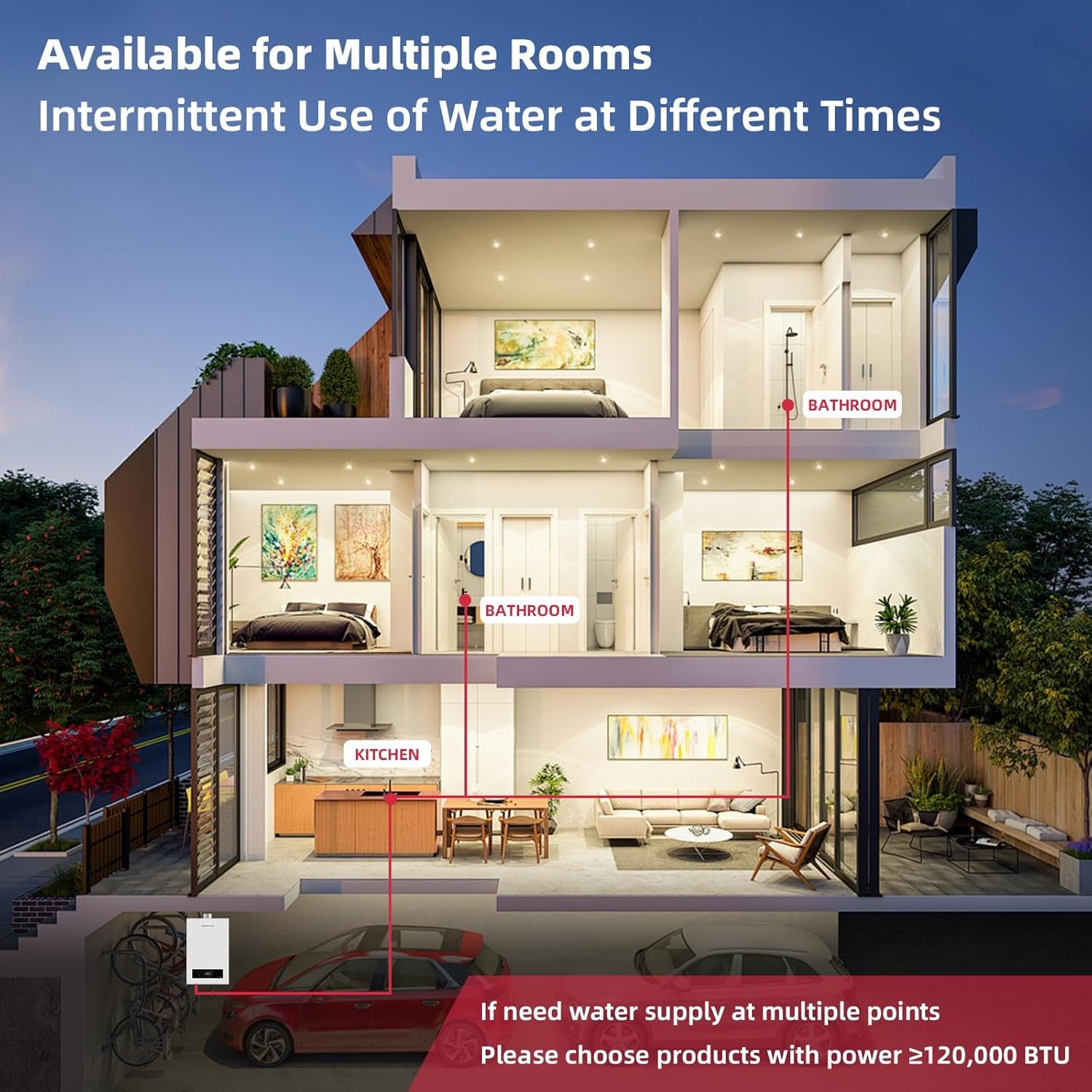 The CS120 propane gas tankless water heater provides a compact and efficient solution for your home’s hot water needs. With a maximum temperature of 149°F and a flow rate of up to 5.1 GPM for 40 minutes, this unit can supply nearly 300 gallons of hot water. Its precise temperature control ensures consistent comfort, adjustable from 95°F to 149°F. Designed for indoor installation, this tankless heater is compatible with most existing vents and pipes, making it an ideal choice for medium to smaller homes with 1-2 bathrooms.