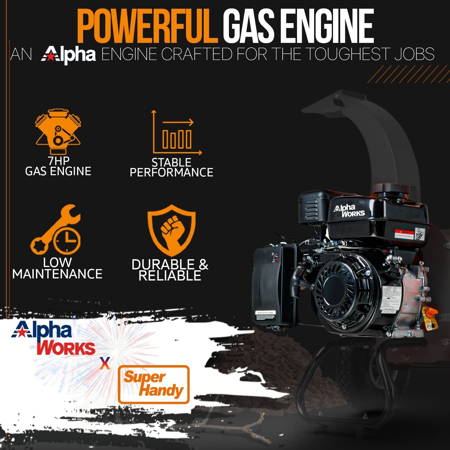 Super Handy GCAO006 Mini Wood Chipper Shredder Mulcher 3" Max Capacity with 7HP 212cc Engine New Canada Only